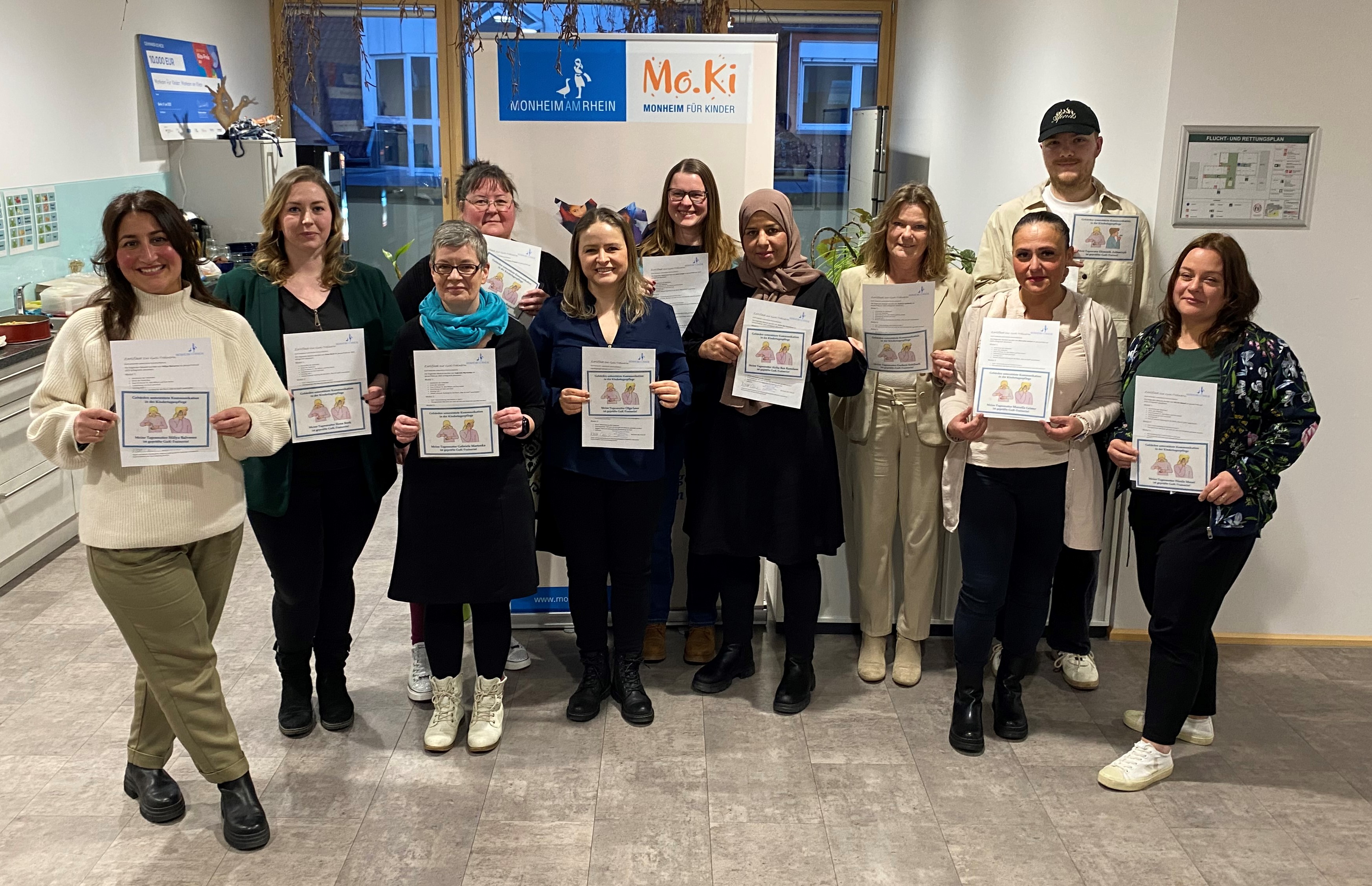 Zwölf Kindertagespflegepersonen haben erfolgreich die Prüfung zu Trainerinnen beziehungsweise zum Trainer für Gebärdenunterstützende Kommunikation (GuK) bestanden. Die Fortbildungsreihe startete Anfang Januar und umfasste insgesamt sechs Abendtermine mit einer abschließenden mündlichen und praktischen Prüfung.